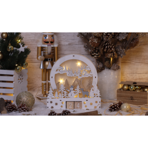 1 kép TRACON Led karácsonyi kocka naptár, tájkép, fa, elemesTimer 6+18h,8LED, 3000K, 2xAAA