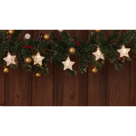 1 kép    TRACON LED karácsonyi lánc, csillag,fehér, elemesTimer 6+18h,10LED, 3000K, 2xAA