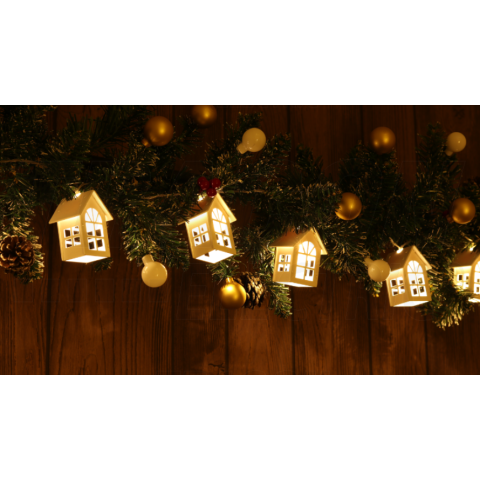 1 kép    TRACON LED karácsonyi lánc, házikó, fehér, fa, elemesTimer 6+18h,10LED, 3000K, 2xAA