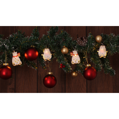 1 kép TRACON LED karácsonyi lánc, pingvin,medve, elemesTimer 6+18h,10LED, 3000K, 2xAA
