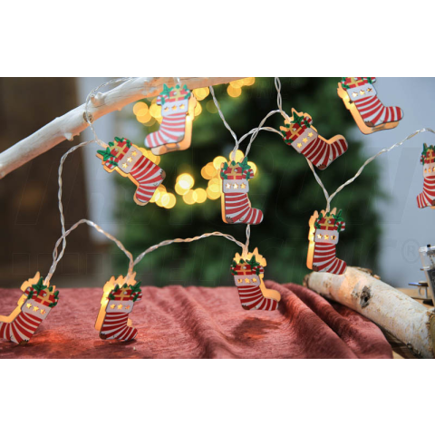 LED karácsonyi lánc, zokni, elemes Timer 6+18h,10LED, 3000K, 2xAA CHRSTSPW10WW