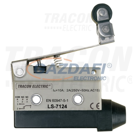 1 kép TRACON LS7124 Helyzetkapcsoló, rugószáras-csuklógörgő 1×CO, 2A/230V AC, 65mm, IP40