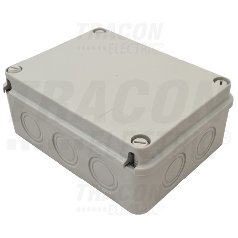 Tracon MED19148 műanyag falon kivüli kötődoboz 190x145x80 teli fedéllel, kikönnyített kábelbevezőtel, IP67 világosszürke Szerelési mód: fali/mennyezeti szerelés Hosszúság: 145 mm Szélesség: 190 mm Mélység: 80 mm Bevezetések száma: 10 Szekrényátvezetés típ