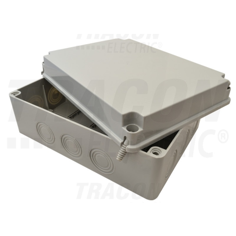1 kép TRACON MED312313 műanyag falon kivüli kötődoboz 310x230x130 teli fedéllel, kikönnyített kábelbevezőtel, IP67 világosszürke