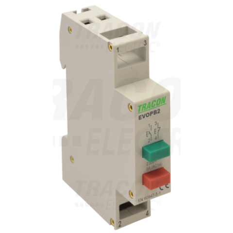 1 kép TRACON Moduláris nyomógomb230V, 50Hz, 1NO, 1NC, Ith_16A, AC-14, Ie_6A