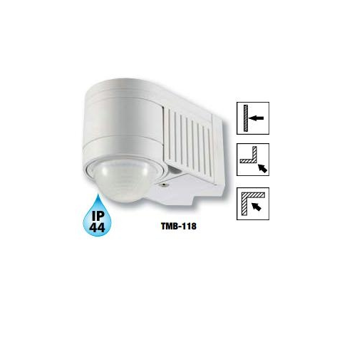TERMÉK JELLEMZŐK:Tracon Mozgásérzékelő, fali, sarokelemmel, fehér230V, 360°, 1-12 m, 10 s-15 min, 3-2000lux, IP44