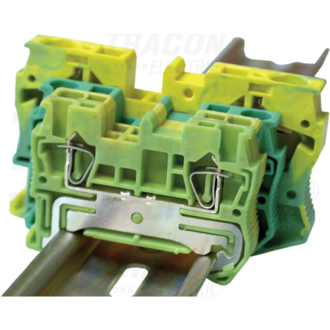 1 kép TRACON Négykapcsos védővezető sorozatk., rugós, sínre, zöld/sárga0,2-2,5mm2, 30A
