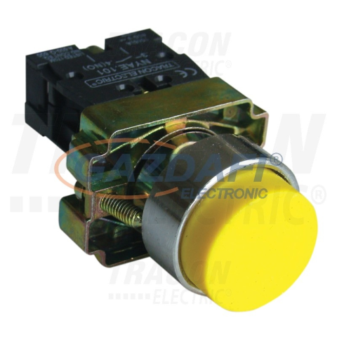 1 kép TRACON NYGBL51S Kiálló nyomógomb, fémalapra szerelt, sárga 1×NO, 3A/240V AC, IP42