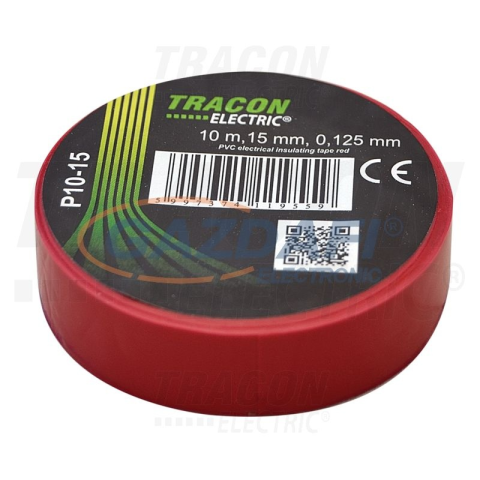 1 kép TRACON P10-15 Szigetelőszalag, piros 10m×15mm, PVC, 0-90°C, 40kV/mm