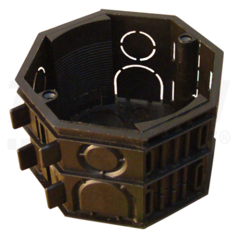 1 kép TRACON Perforált szerelvénydoboz süllyesztett, nyolcszögletű,fekete72×72×46mm