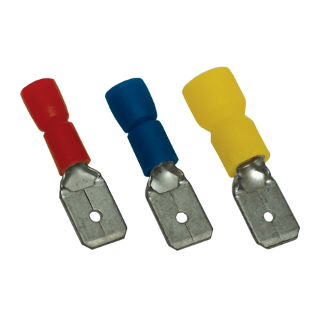 TERMÉK JELLEMZŐK:Tracon SCS6 Szigetelt rátolható csatlakozó csap, sárgaréz, sárga6,3×0,8mm, 6mm2