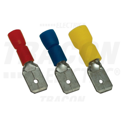 1 kép TRACON SCS6 Szigetelt rátolható csatlakozó csap, sárgaréz, sárga 6,3×0,8mm, 6mm2