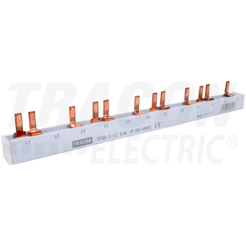 1 kép TRACON Soroló sín - csapos kivitelű max.63A, 230/400VAC, 3P, 12modul, 215mm