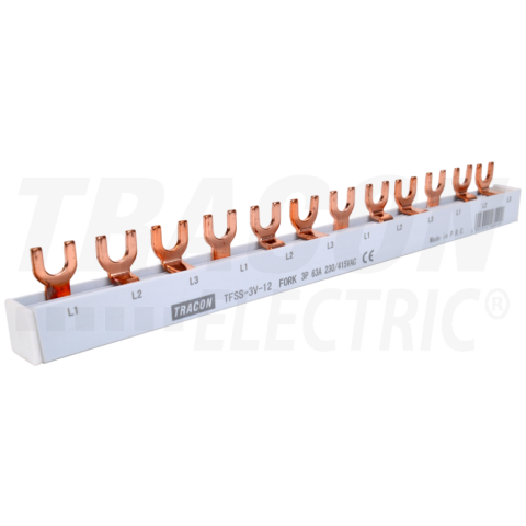 1 kép TRACON Soroló sín - villás kivitelűmax.63A, 230/400VAC, 3P, 12modul, 215mm