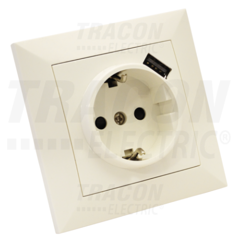 1 kép TRACON Süllyesztett csatlakozóaljzat USB töltővel1×16A/250VAC, 2P+E, USB_5V,2100mA (SCHUKO)