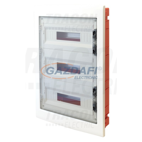 1 kép TRACON Süllyesztett elosztódoboz, füstszínű-sík ajtóval,N/PE sínnel