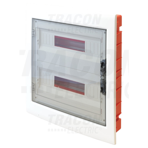 Kiselosztó süllyesztett 2soros, 36 modulos átlátszó ajtóval IP40 sín nélkül, sík ajtóval EDSS-18/2 Tracon