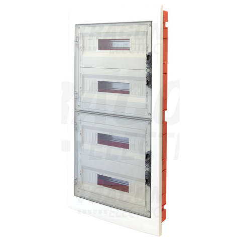 Kiselosztó süllyesztett 4soros, 72 modulos átlátszó ajtóval IP40 sín nélkül, sík ajtóval EDSS-18/4 Tracon