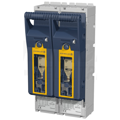 1 kép TRACON Szakaszolókapcsoló-biztosító,szerelőlapra, lapos csatlakozó 690VAC, 440VDC, 630A, 2P, NH3