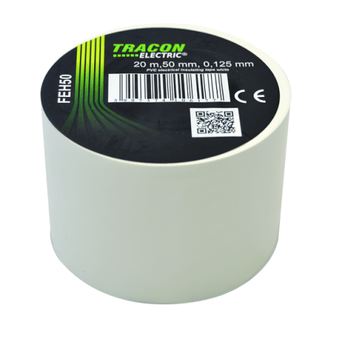20 méteres, fehér színű szigetelőszalag. 5 cm széles.