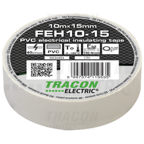 1 kép TRACON Szigetelőszalag, fehér10m×15mm, PVC, 0-90°C, 40kV/mm