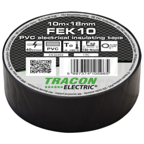 1 kép TRACON Szigetelőszalag, fekete10m×18mm, PVC, 0-90°C, 40kV/mm