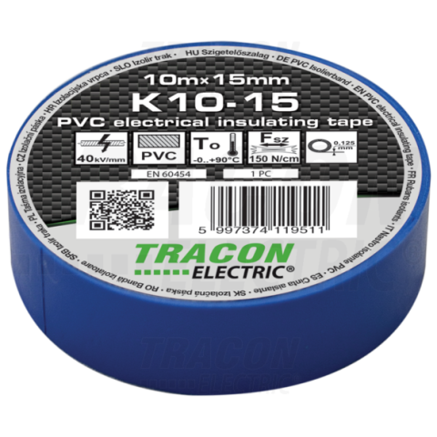 1 kép TRACON Szigetelőszalag, kék10m×15mm, PVC, 0-90°C, 40kV/mm