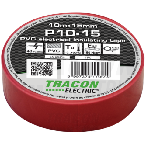 1 kép TRACON Szigetelőszalag, piros10m×15mm, PVC, 0-90°C, 40kV/mm