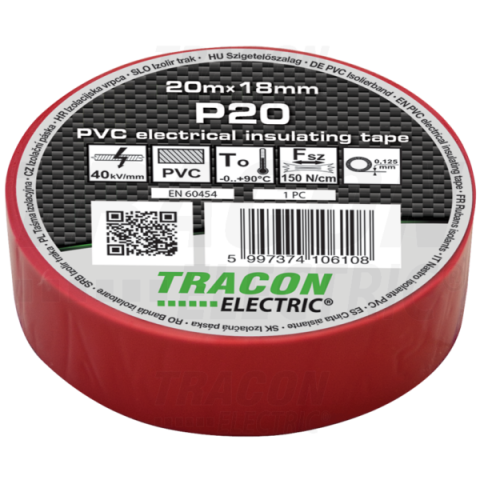 1 kép TRACON Szigetelőszalag, piros20m×18mm, PVC, 0-90°C, 40kV/mm