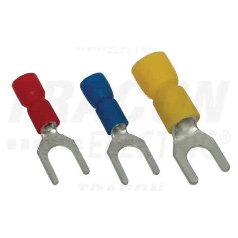 1 kép TRACON Szigetelt 6mm2, M4 villás saru, ónozott elektrolitréz, sárga