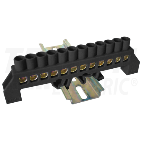 1 kép TRACON Szigetelt földelősín (N/PE), fekete230/400VAC, 100A, 8×12mm, 12P, IP20