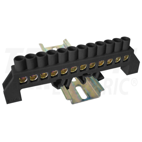 1 kép TRACON Szigetelt földelősín (N/PE), fekete 230/400VAC, 100A, 8×12mm, 12P, IP20