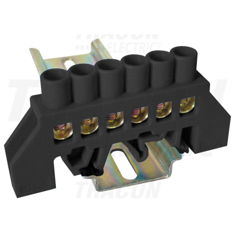 1 kép TRACON Szigetelt földelősín (N/PE), fekete 230/400VAC, 100A, 8×12mm, 6P, IP20
