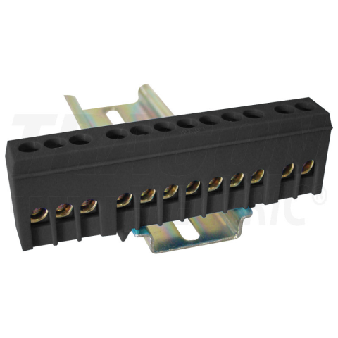 1 kép TRACON Szigetelt földelősín (N/PE), fekete 230/400VAC, 63A, 6×9mm, 12P, IP20
