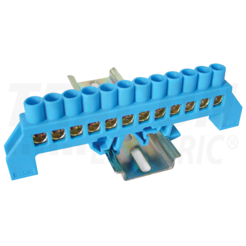 1 kép TRACON Szigetelt földelősín (N/PE), kék230/400VAC, 100A, 8×12mm, 12P, IP20