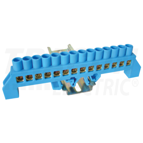 1 kép TRACON Szigetelt földelősín (N/PE), kék230/400VAC, 100A, 8×12mm, 14P, IP20