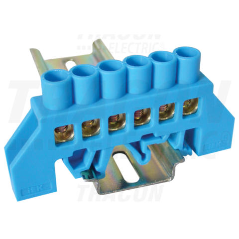 1 kép TRACON Szigetelt földelősín (N/PE), kék230/400VAC, 100A, 8×12mm, 6P, IP20