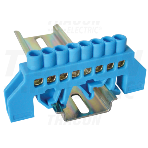 1 kép TRACON Szigetelt földelősín (N/PE), kék230/400VAC, 63A, 6×9mm, 8P, IP20