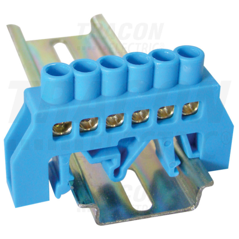 1 kép TRACON Szigetelt földelősín (N/PE), kék 230/400VAC, 63A, 6×9mm, 6P, IP20