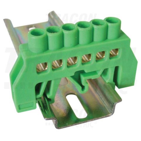 1 kép TRACON Szigetelt földelősín (N/PE), zöld230/400VAC, 63A, 6×9mm, 6P, IP20