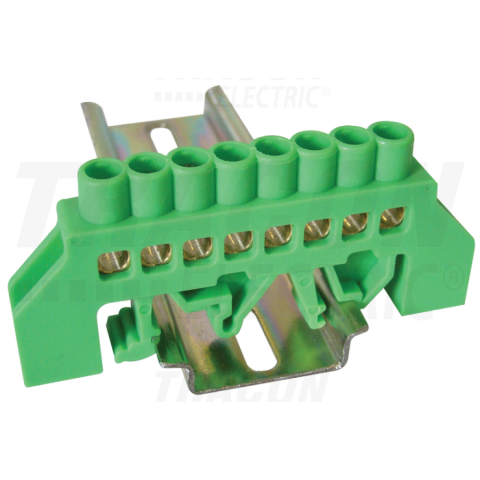 1 kép TRACON Szigetelt földelősín (N/PE), zöld230/400VAC, 63A, 6×9mm, 8P, IP20