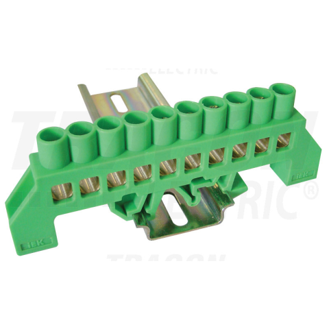 TRACON Szigetelt földelősín (N/PE), zöld 230/400VAC, 100A, 8×12mm, 10P, IP20
