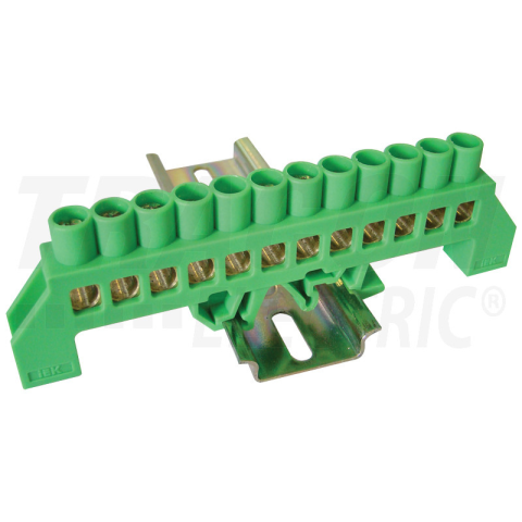 1 kép TRACON Szigetelt földelősín (N/PE), zöld 230/400VAC, 100A, 8×12mm, 12P, IP20