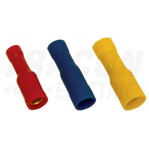 1 kép TRACON Szigetelt hengeres csatlakozó aljzat, elektrolitréz, sárga6mm2, (d1=3,5mm, d2=5mm), PVC