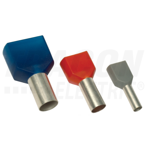 1 kép TRACON Szigetelt (PA6.6) iker-érvéghüvely, ónoz. elektr.réz, piros2×1mm2, l=8mm