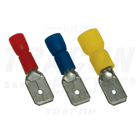 1 kép TRACON Szigetelt rátolható csatlakozó csap, sárgaréz, piros6,3×0,8mm, 1,5mm2