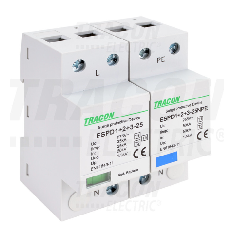 Túlfeszültség levezető T1+T2+T3 AC tipusú egybeépített ESPD1+2+3-25-1+1P Tracon