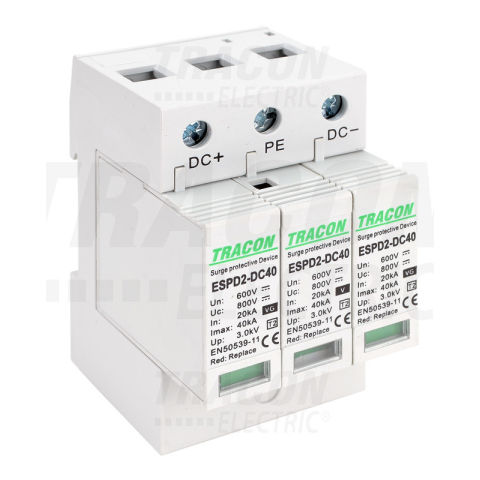 1 kép TRACON T2 DC típusú túlfeszültség levezető, cserélhető betéttel 800V