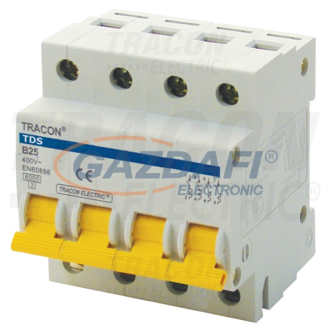TRACON TDS-4B-6 Kismegszakító, színes karral, 4 pólus, B karakterisztika 6A, 6kA