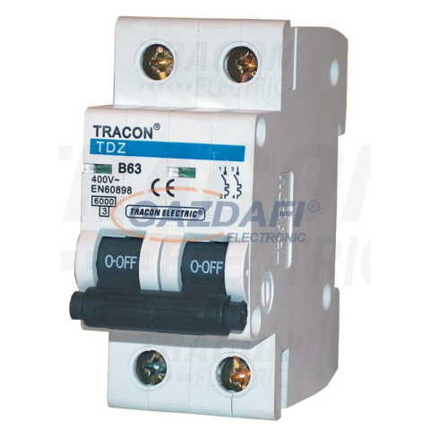 1 kép TRACON TDZ-2D-63 Kismegszakító, 2 pólus, D karakterisztika 63A, 6kA